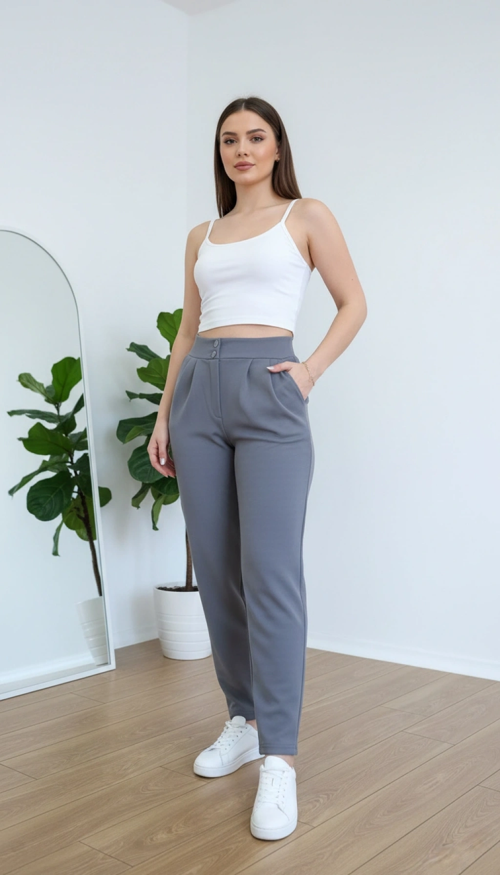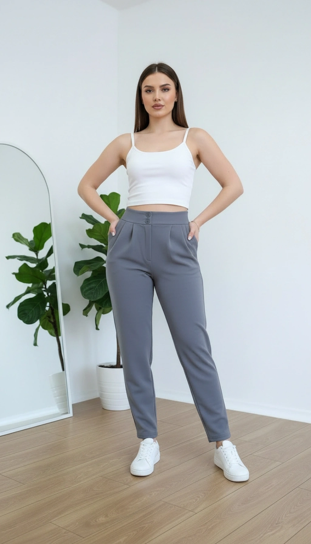 Şıklığı ve rahatlığı bir arada sunan Krep Kumaş Havuç Pantolon ile tarzınızı ön plana çıkarın. Yüksek bel tasarımı sayesinde belinizi sıkıca sararak vücudunuza uyum sağlar. Hafif ve esnek kumaşı ile gün boyu konfor sunar. Krep kumaşın benzersiz dokusu ile her mevsim tercih edebileceğiniz şık bir parça. Hem günlük hayatta hem de özel davetlerde şıklığınızı tamamlayacak Havuç Pantolon ile tarzınızı konuşturun.
