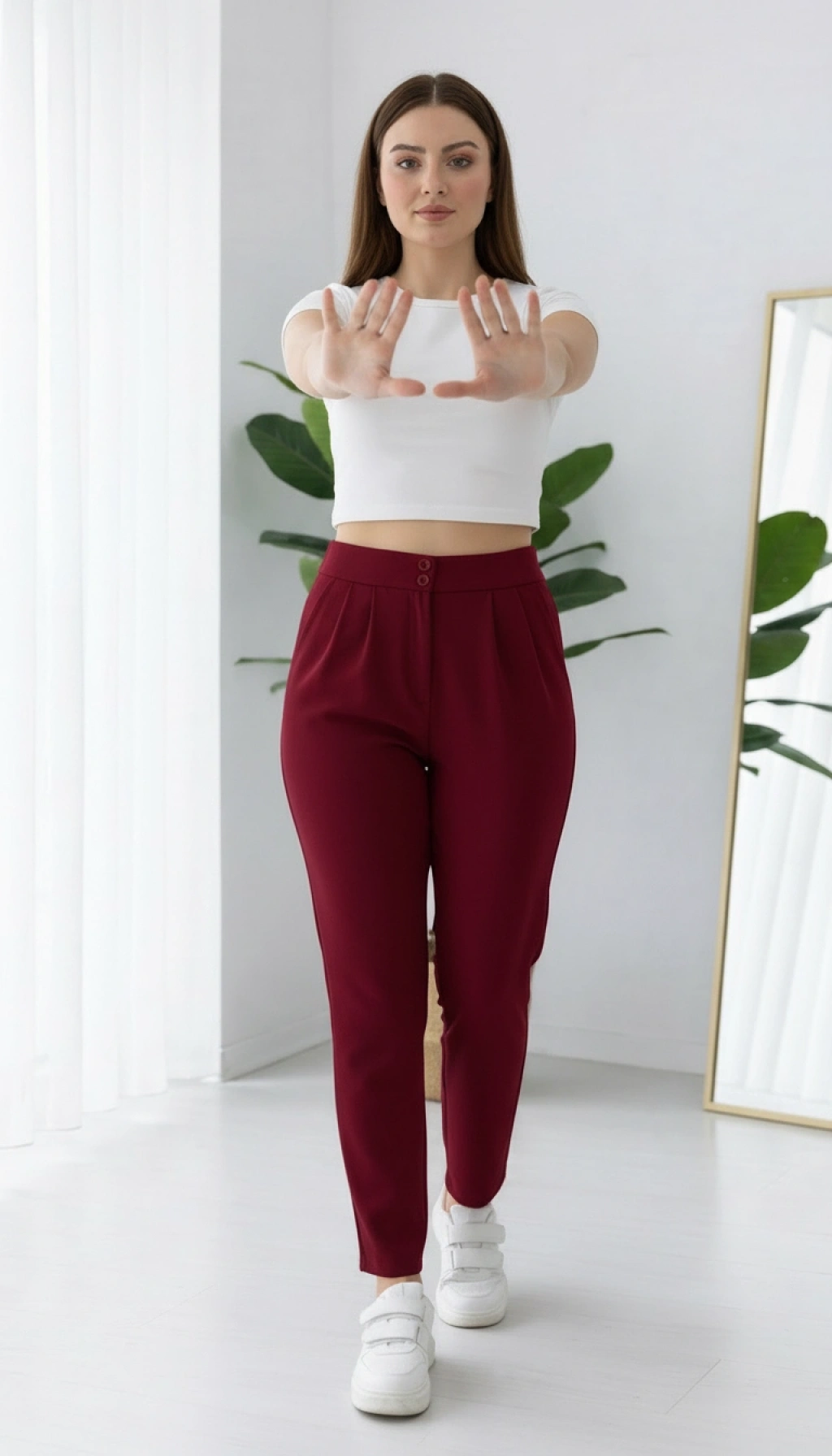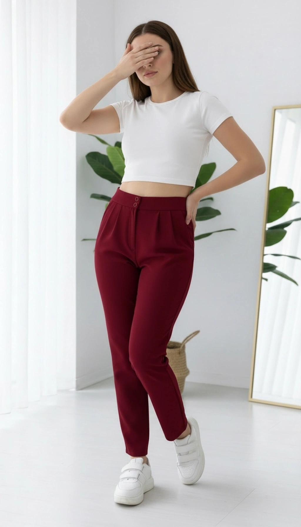 Şıklığı ve rahatlığı bir arada sunan Krep Kumaş Havuç Pantolon ile tarzınızı ön plana çıkarın. Yüksek bel tasarımı sayesinde belinizi sıkıca sararak vücudunuza uyum sağlar. Hafif ve esnek kumaşı ile gün boyu konfor sunar. Krep kumaşın benzersiz dokusu ile her mevsim tercih edebileceğiniz şık bir parça. Hem günlük hayatta hem de özel davetlerde şıklığınızı tamamlayacak Havuç Pantolon ile tarzınızı konuşturun.