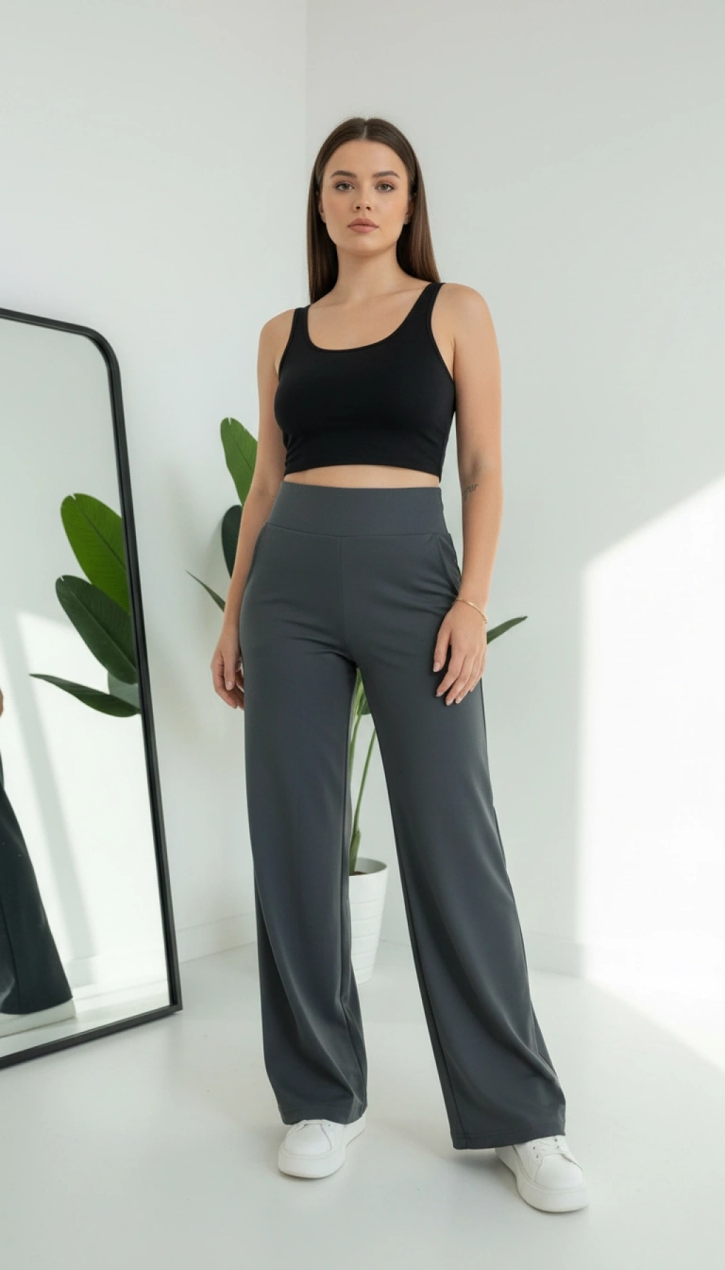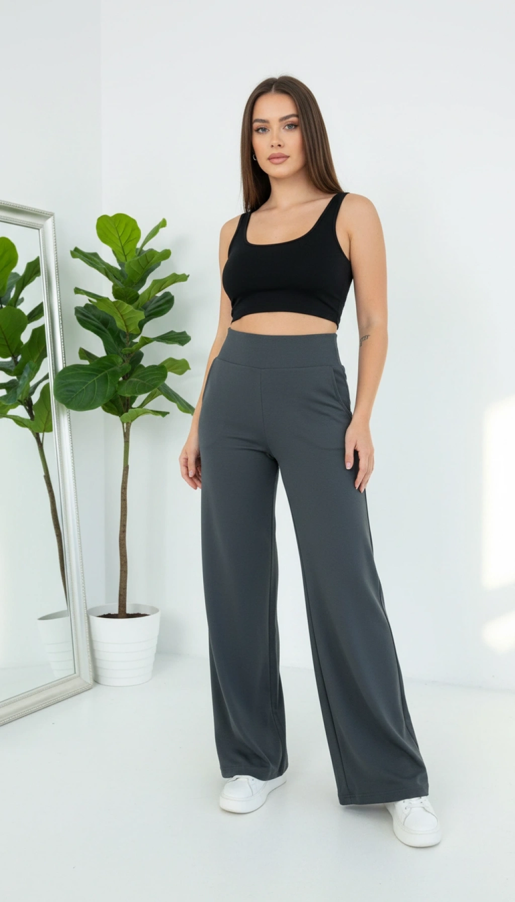 Pantolonlarımız, kaliteli ve şık bir duruş sunan  Krep Kumaş kullanılarak üretilmiştir.