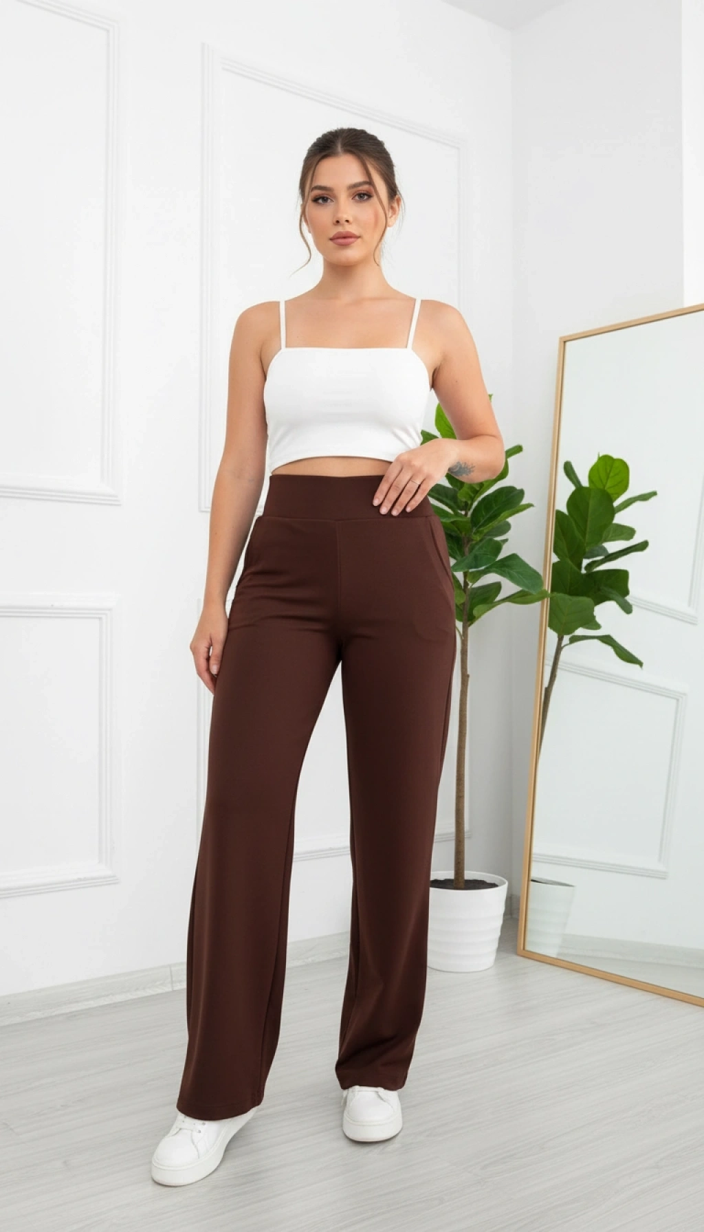 Pantolonlarımız, kaliteli ve şık bir duruş sunan  Krep Kumaş kullanılarak üretilmiştir.